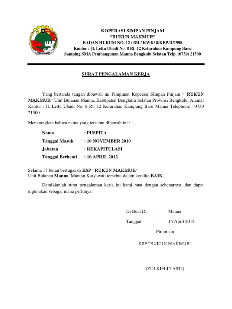 4 contoh bukti surat pengalaman kerja perusahaan lengkap mamikos info. 1 peraturan menteri negara koperasi dan smecda. Contoh surat lamaran kerja simpan pinjam. 24+ ksp contoh surat lamaran kerja di koperasi simpan pinjam new. Contoh database koperasi 3 glorios as palavras.